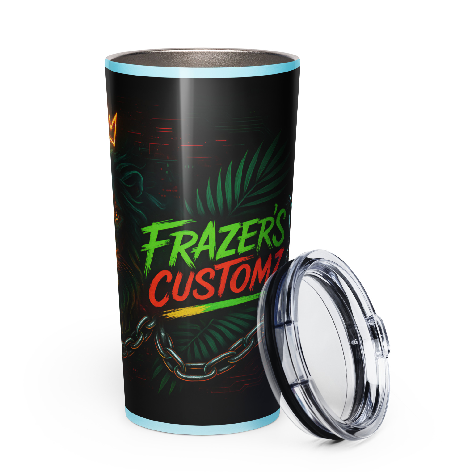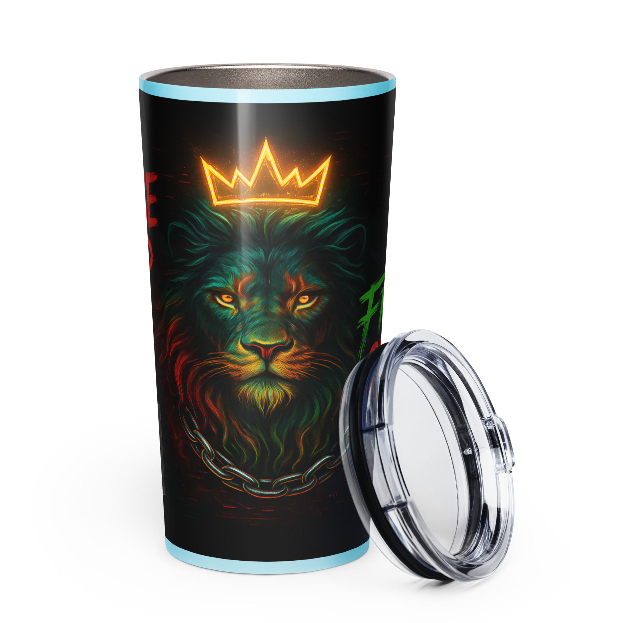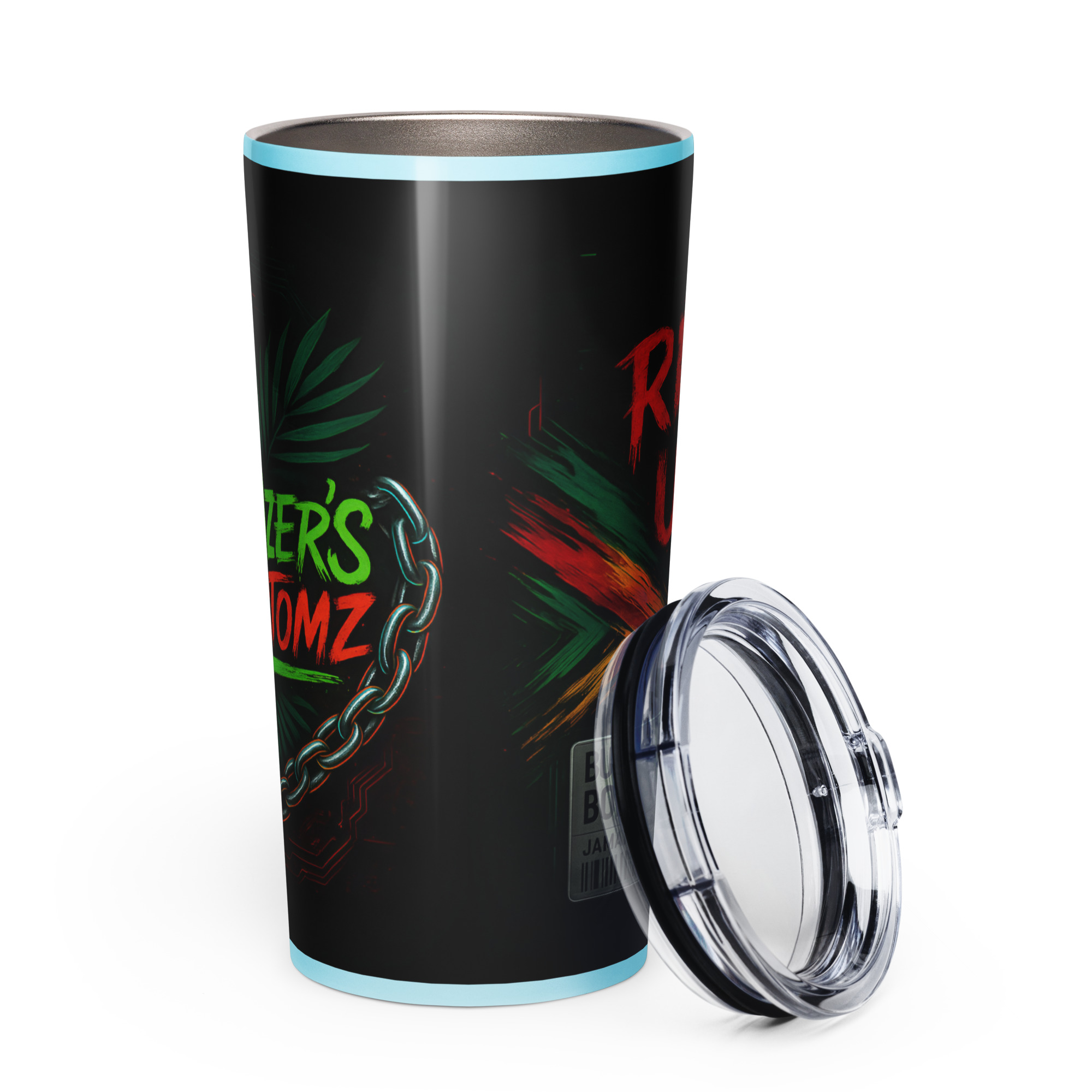 This 20oz tapered stainless steel tumbler features a bold, full-wrap design straight from the streets of Kingston to the future. With Afro-futuristic vibes, glitch textures, tribal energy, and graffiti power — this is more than a drinkware item. It’s a statement.
